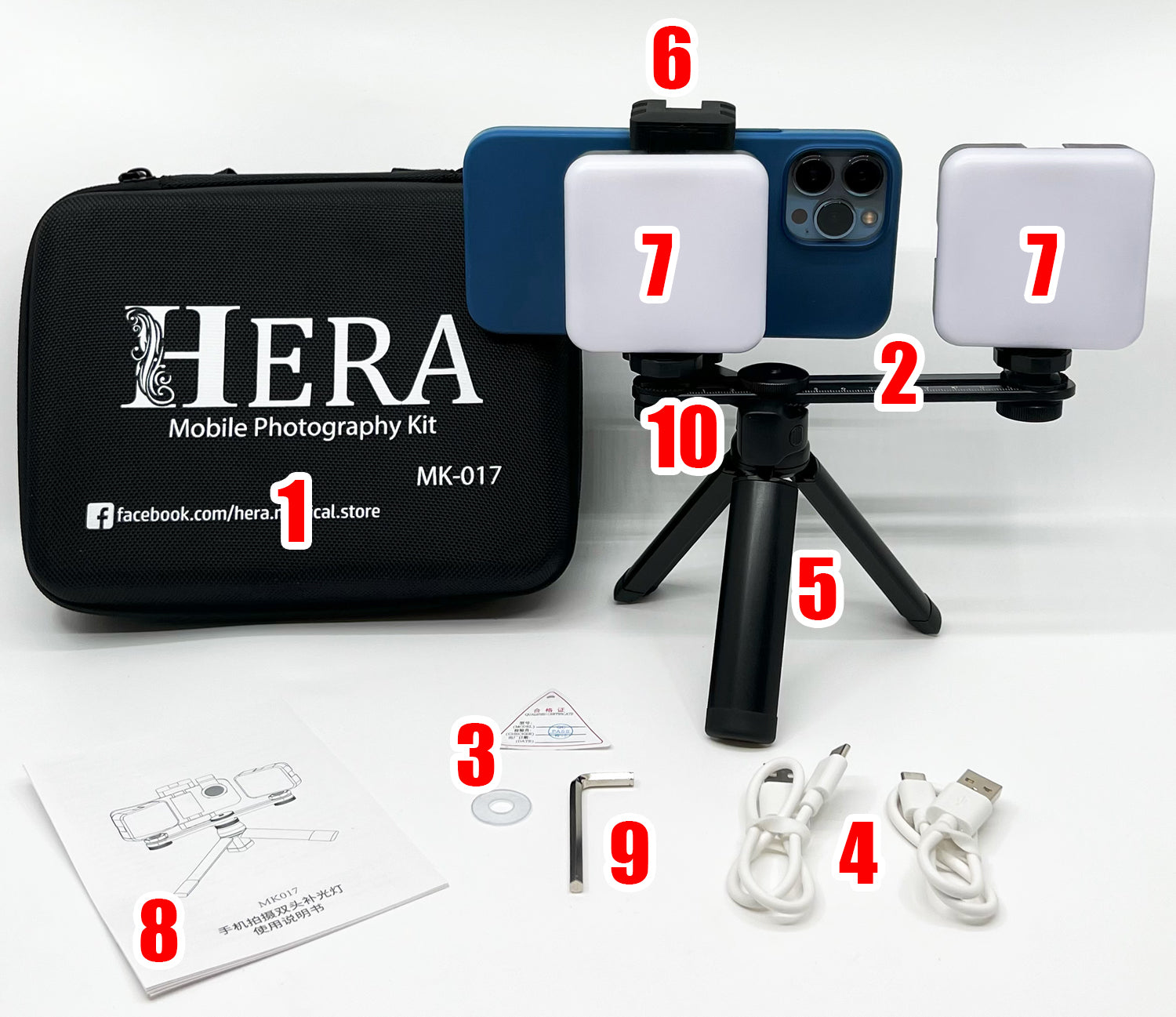 MK-017 is the brightest model ever. In fact it is the brightest LED light for phone photography you can find. Maximum brightness is 1370 LUX / 0.3 m2