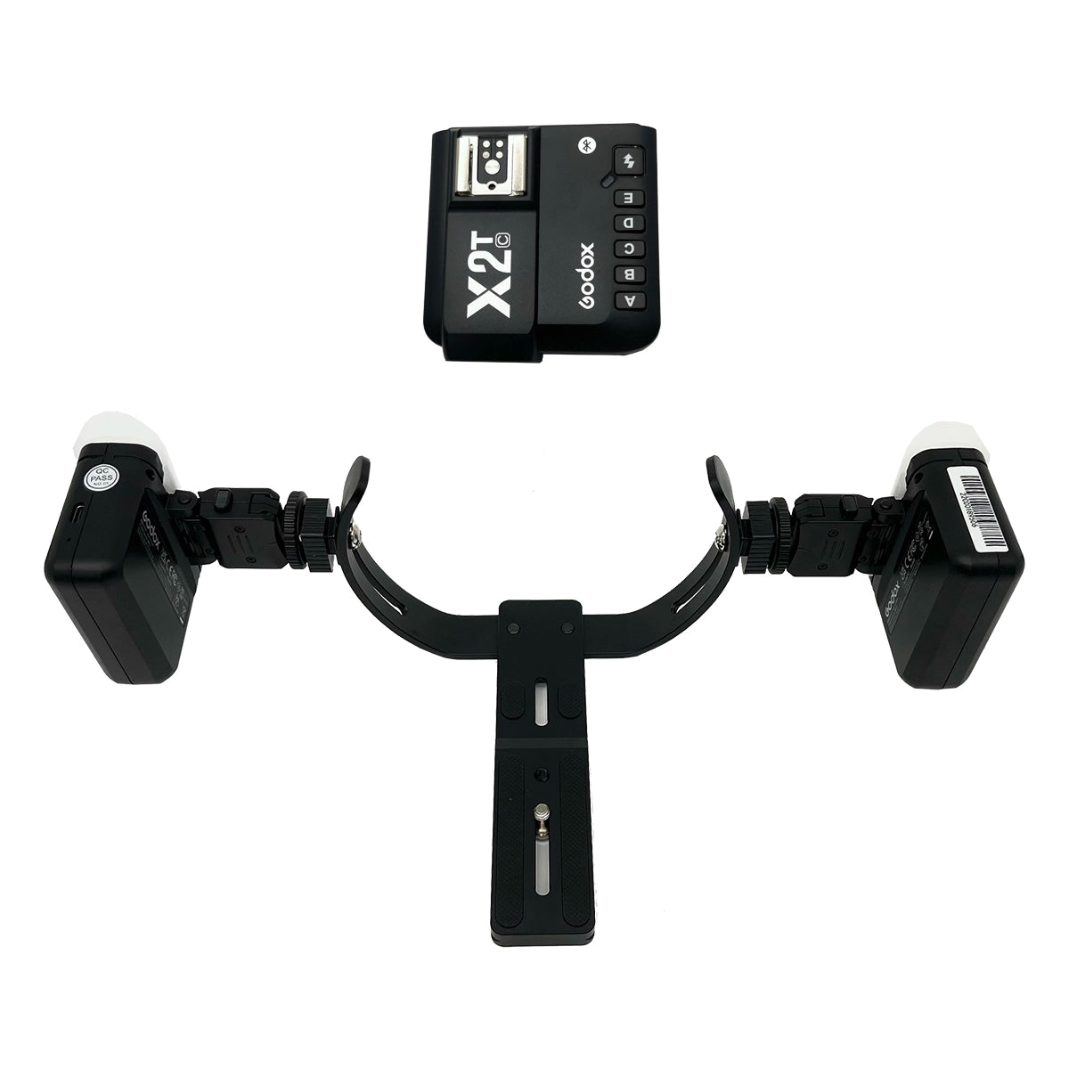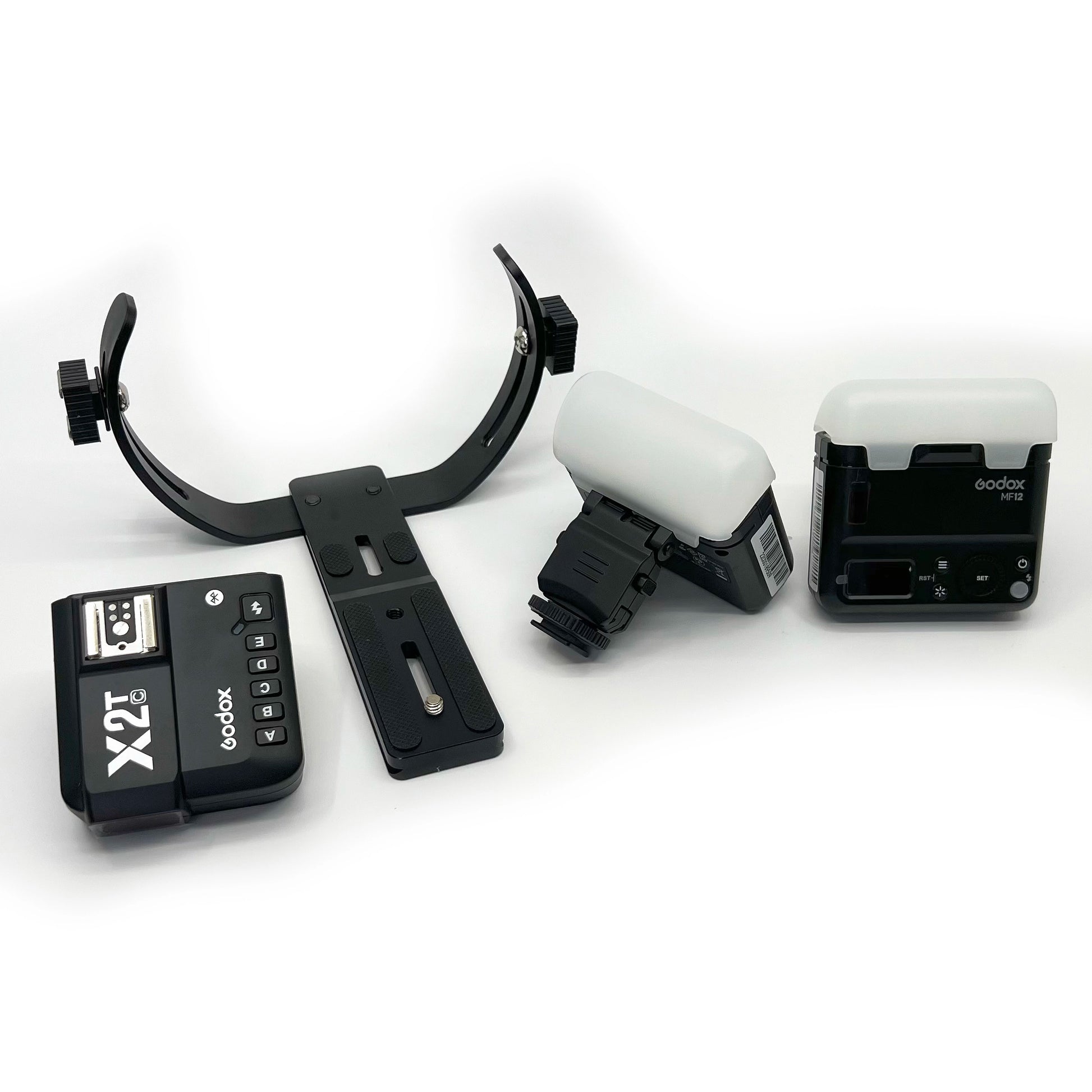 You can order the MK-018 Bracket alone if you already have suitable flashes for your camera or you can get the "Twin Flash Kit" which includes MK-018 Bracket with Godox X2T Flash Triger and two Godox MF12 Flashes.